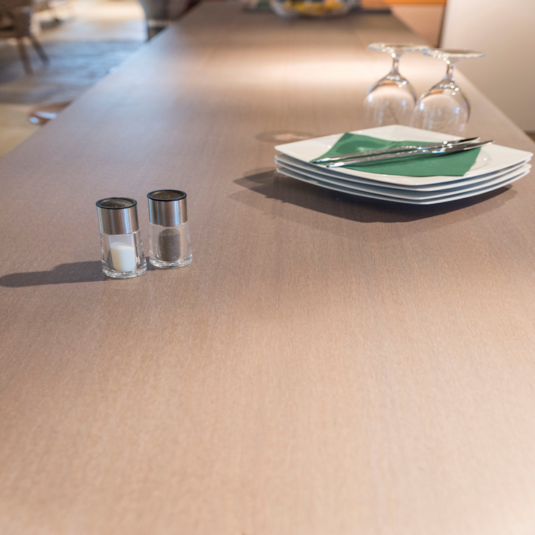 For colour design, the surface of the UPB boards can be coloured directly with a glaze especially developed for Resysta®. We recommend our Resysta® 2K protective lacquer to enhance mechanical and chemical resistance and protection against staining. After treatment, a surface which is hardly distinguishable from wood is the convincing result. Alternatively, coloured oils especially matched for Resysta®, are available.